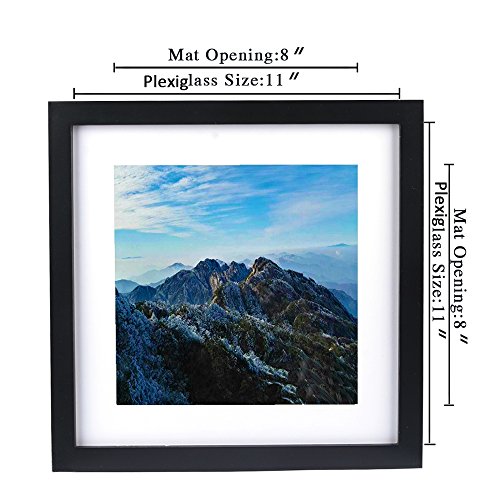 - Delicate Design: 11 x 11 inches Sleek black wooden frame and white acid-free mat with an 8 x 8 inch opening.We recommend taping the photo to the back of the mat.(including wall mounting material).