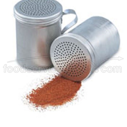 Studio : VOLLRATH Publisher : VOLLRATH Product Description This 10 oz aluminum dredge is ideal for shaking salt, spices, and powdered sugar and is constructed with 18 gauge aluminum.Handle: No Material: 18 gauge aluminum Hole Diameter: .075" Capacity: 10 oz Width: 2-3/4" Height: 3-3/4" 140200 0