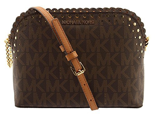 MICHAEL KORS PVC Saffiano Violet Cindy Large Dome Crossbody in Brown