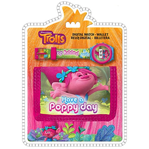 ( Have a Poppy Day ) Trolls Digital Watch+Wallet Gift Set ,Children Watch Digital Watch, Official Licensed (Licensed by Dreamworks Trolls Company LLC). 1-100% Official Merchandise . 2-Digital Watch:Normal Time Display : Hours & Minutes ,1/5 Coin Battery(Include ) 3- Wallet Gift Set This Trolls children's watch is a colourful and ideal for young children who are a fan of the show. It displays the date and time . This is a great way to teach your children how to tell the Time & Date and to enhance their Intellectual development. It's got a fab, colourful design featuring your favourite little pup pilot. Your Trolls watch also has a clear LCD screen that shows the date and time and fabulous Wallet Gift Set. A great gift for ages three and up. - Produced BY:Kids Eurosean,S.L Manufacturer Number(NIF):B-62521620 Not recommended for children under 3 years old,choking hazard. - Feedback: Please contact me 'before' leaving feedback if there is any concern or problem with your order. There is never any need for you to be an unhappy customer, or for there to be any misunderstandings. Items will be shipped within 1 business day after payment completed or cleared.Feature