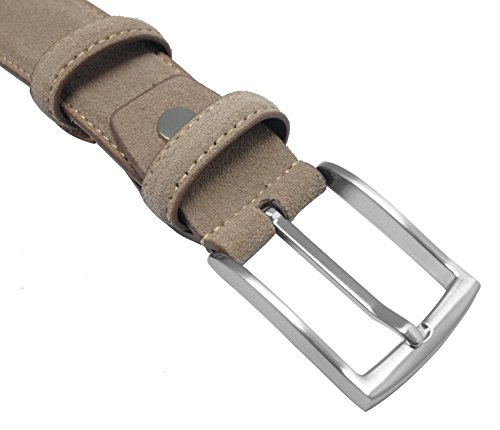 This belt made from suede leather, and the back side made from matt finish split leather, it's suitable and durable. the buckle made from exquisite brushed metal, there are 5 color for choose, beige, tan, grey, navy blue, light taupe.Feature