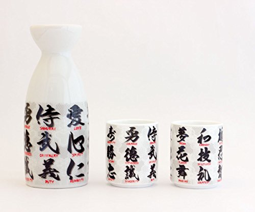 Product Description Japan Sake Set KANJI is a Mino Ware Sake set with prints of Kanji (Chinese characters). Mino ware is one of the traditional Japanese ceramics made in Gifu Prefecture. 0