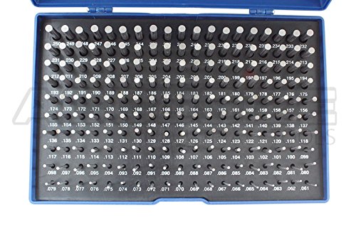AccusizeTools - 190 Pcs/Set M1(-) 0.061'' - 0.250'' Steel Plug Pin Gage Set Minus, #M1(-)