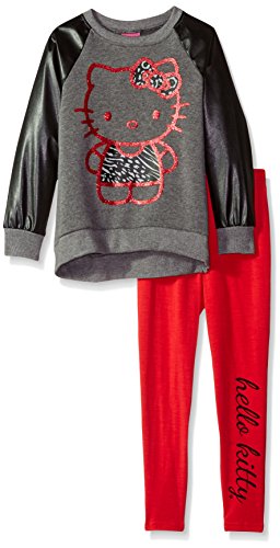 Hello Kitty Little Girls' 2 Piece Long Sleeve and Legging Set, Gray1, 6