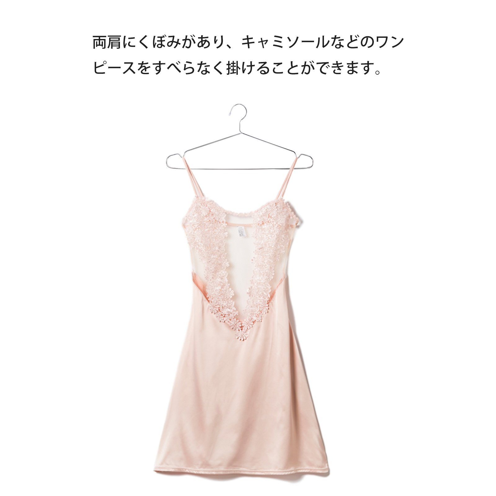 ① Because there are dents on both shoulders of hanger, you can hang clothes such as camisole and dress.