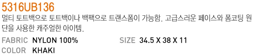 (품번 : 5316UB136 / 카키)