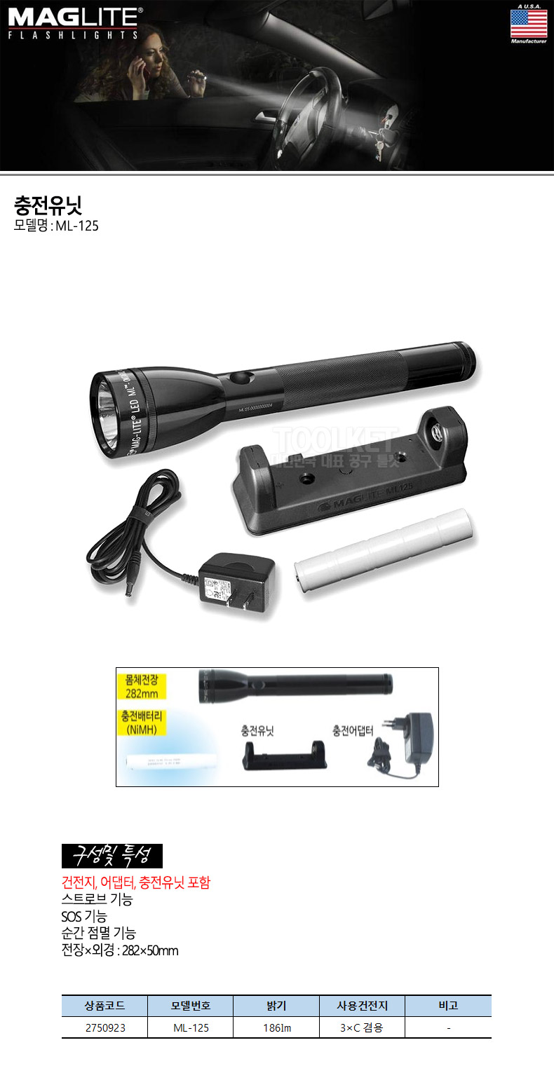 FLASHLIGHT Rechargeable LED ML125 282mm Lighting SOS