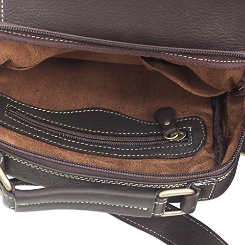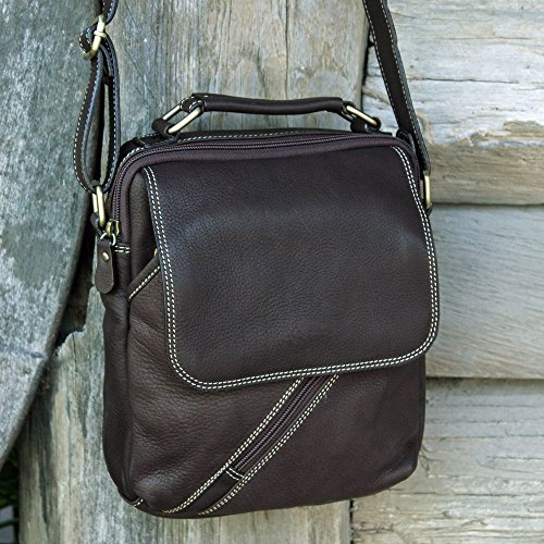 About this item: By Suchada, this handsome shoulder bag showcases supple leather in dark espresso brown. The bag opens to reveal an inner zipper pocket and two open pockets, while an outer zipper pocket is easily accessible on the back of the bag. On the front, two zipper pockets and one open pocket are protected with a generous flap. Lined in solid brown polyester with a suede-like texture, the shoulder bag closes with a zipper, and the flap is secured with a magnetic . Strap: 27.0" min L - 47.0" max L x 1.2" W Maximum strap drop length :20.5" from strap to bag Minimum strap drop length: 11.5" from strap to bag Handle: 6.75" L x 1.2" W Handle drop length: 1.2" from strap to bag - Adjustable strap(s)