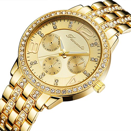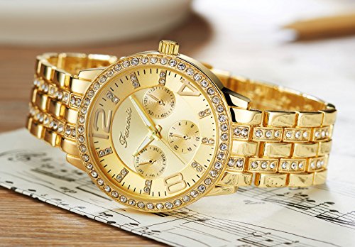 -. Feature : Accurate Quartz Movement, Gold Luxuxy Geneva Dial Quartz women Full Steel Watch Dress Watches Lady Fashion Wrist Watch / 100% Brand New Watch Suitable for many occasions, best gift for your friend and families. / Fashion Designs, Reliable Quality, Economical P.R.Ice, and comfortable Wearing / Long warranty with superb Customer support / Three sub-dials are non-working and intended for decorative purposes.