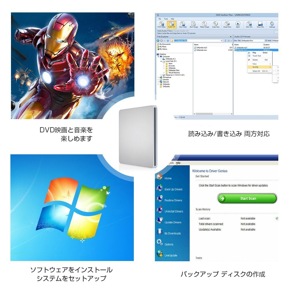 Patech USB 2.0 portable CD / VCD / DVD over RW drive slot design slim type bus-powered Windows / Mac for OS (Pearl White)