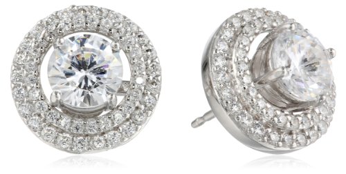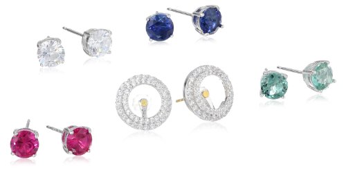 -. Feature : Earring set including one pair of cubic zirconia halo jackets and four pairs of interchangeable studs: created blue sapphire, created quartz, created ruby, and cubic zirconia. / Friction-back post / Stud earrings can be worn alone or nested within the halo jackets. / Studs with halo jackets measure 0.47" across. / Imported