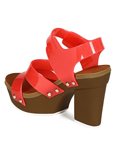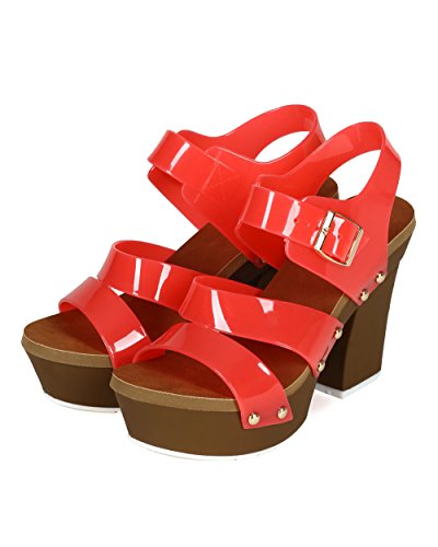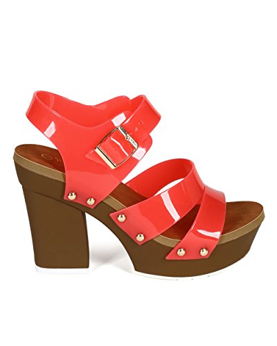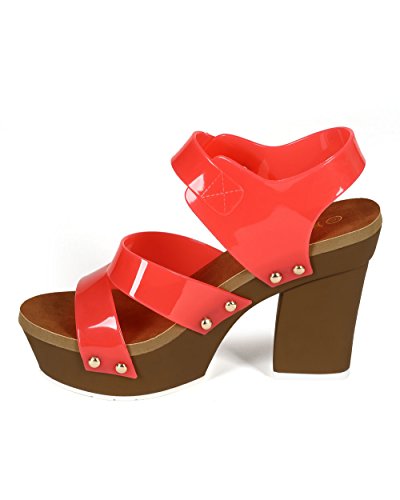 Nature Breeze CC75 Women Jelly Open Toe Strappy Platform Chunky Heel Sandal - Coral
