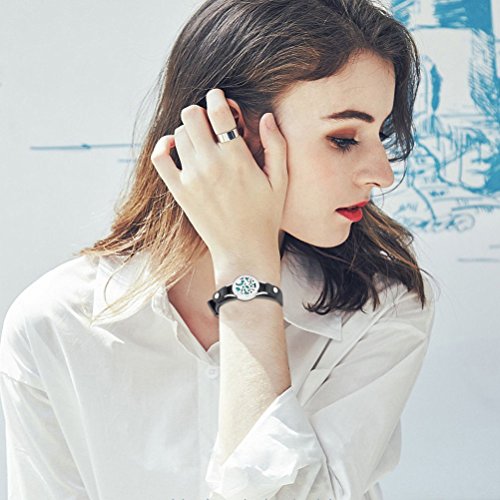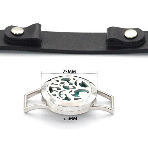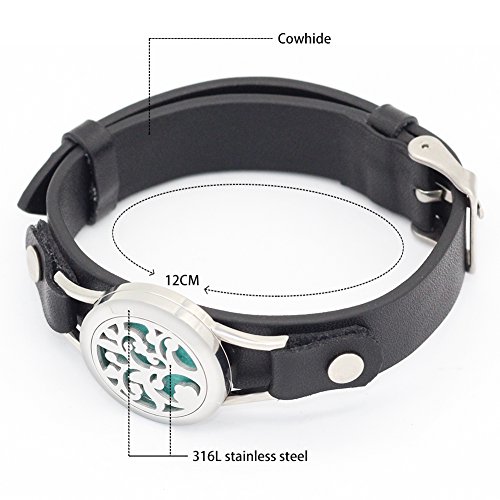COOHAA Broad Leather Band Aromatherapy Stainless Steel Locket Diffuser Bracelets, Essential Oil Diffuser Wrap Bracelet with 12 PCS Cotton Pads