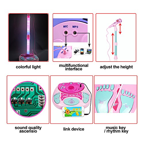 ★ The multifunctional control base can adjust volume , accompaniment, modes ,rhythm and music, which can let the kid enjoy singing their favorite song, it also can be connected to your mobile phone, MP3 and computer.