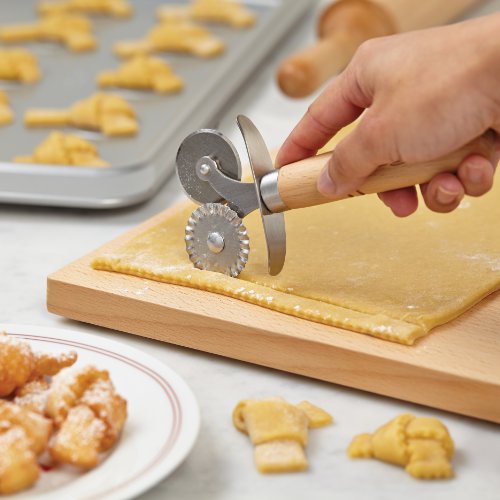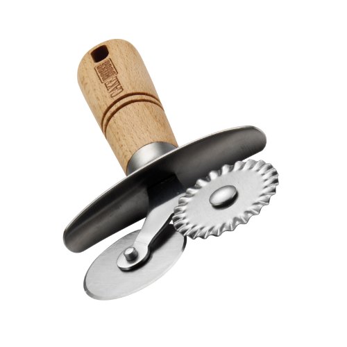 Studio : Meyer Publisher : Meyer Binding : Kitchen Product Description Be ready to roll with the Cake Boss Wooden Tools and Gadgets Stainless Steel Double Pastry Wheel. Making decorating easier and more enjoyable for both novice and professional bakers, this double pastry wheel helps create straight or decorative edges on rolled fondant and pastry dough. It features two separate stainless steel blades: one for cutting straight lines and one to add a scalloped edge to fondant and gum paste. The double pastry wheel is also perfect for cutting straight or scalloped edges in pastry dough for a lattice crust, or for portioning strudel dough or puff pastry for homemade croissants. Featuring a traditional beechwood handle loved by professional bakers, the double pastry wheel provides two-in-one convenience, eliminating the need to switch from one piece of equipment to another. The double pastry wheel is heat safe to 500 Degree F and hangs for convenient storage. Hand washing is recommended to preserve the finish. Complete your Cake Boss Tools and Gadgets collection with this convenient double pastry wheel and the other great items from all the Cake Boss collections. Roll like the Boss with the Cake Boss Wooden Tools and Gadgets Stainless Steel Double Pastry Wheel that creates straight or decorative edges on rolled fondant and pastry dough. 0