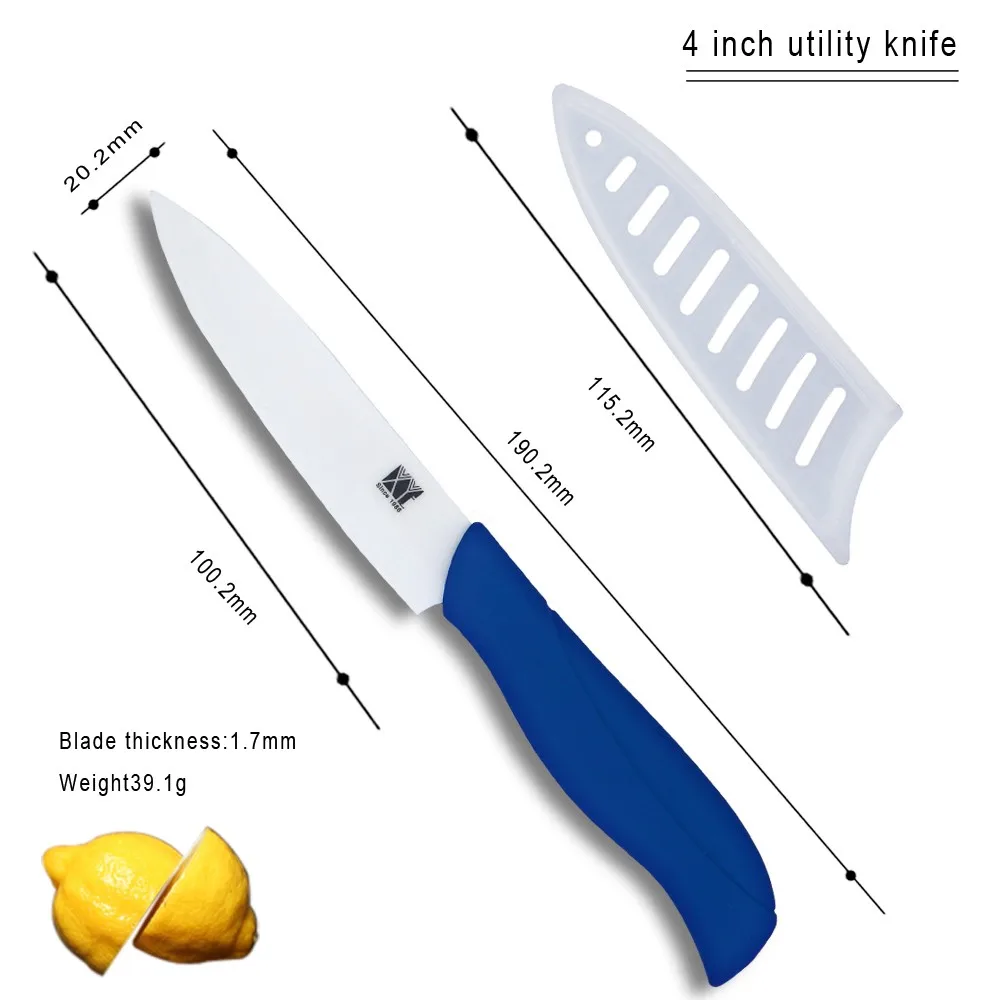 Handle- Strong, durable, slip-resistant .FIRST-RATE ceramic blade - crafted so that it is more sharp.Perfect for prepping food ,like:fruits, vegetables.knives with cover for safe storage.