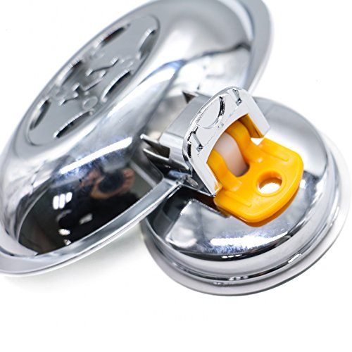 -. Feature : Super powerful vacuum suction soap dish holder,made of high quality metal material with glossy surface,won't rust. / Easy to install,does't need nails,drilling and tools,harmless to the wall. / With several holes at the bottom for quickly dry and reduce the growth of bacteria. / How to install?Pull the yellow button up and let the suction out and install on the wall,then pull the button down. / It is better to use it after 24 hours of installation,to make sure it strong and solid.