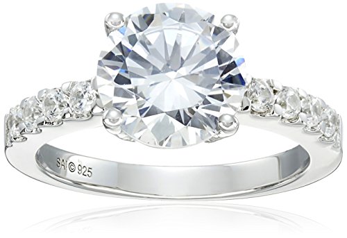 This classic and sparkling ring is made of finely designed round cubic zirconia. It's made in shimmer sterling silver.