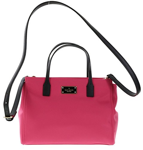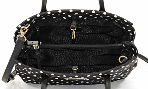 Nylon bag has dog-leash closure; Gold-toned hardware; 2 handles with drop of approx. 4.5 inches; 1 adjustable/removable strap with maximum drop of approx. 23.5 inches