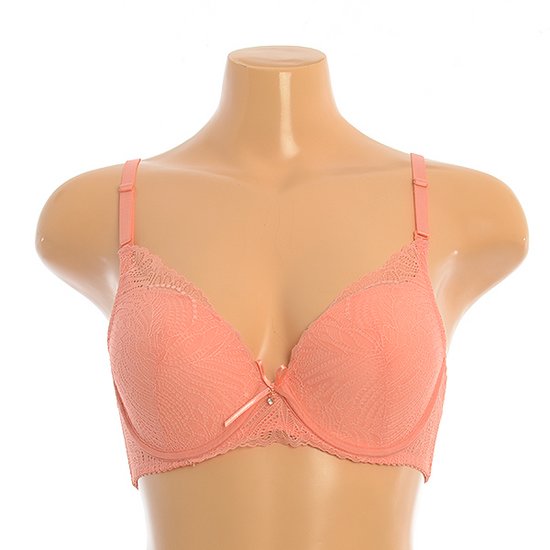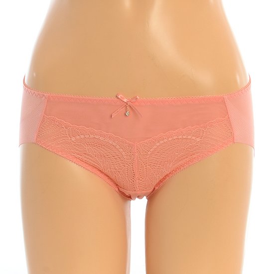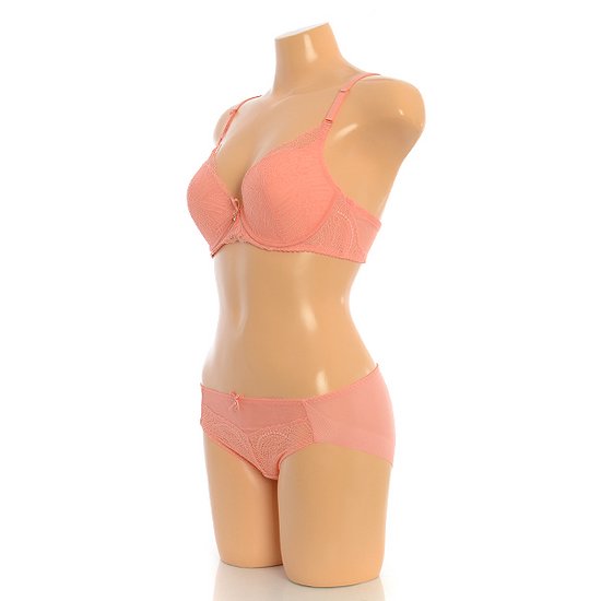잔잔한 무늬의 가볍고 섬세한 레이스로 여성스러운 느낌과 3/4컵 라인으로 편안하게 가슴 라인을 모아주는 브래지어 햄팬티 세트입니다.봄 여름 시즌에 사랑스럽게 연출 가능한 민트와 톡톡튀는 코랄오렌지 컬러로 구성되었습니다