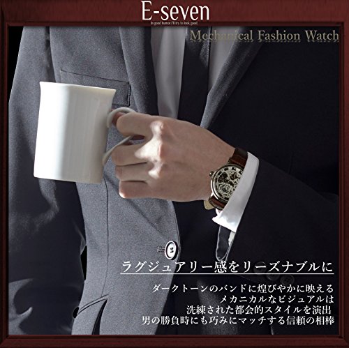-. Title : E-seven(イーセブン) 腕時計 メンズ スケルトン 手巻き 自動巻き 機械式 革 レザー tfsle