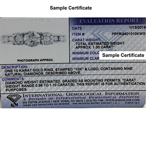 -. Binding : Jewelry -. Brand : Amanda Rose Collection -. Department : womens -. Feature : 10K White Gold Setting / 9 Diamonds = 1ct total ( weight may vary by .05ct) / Choose your ring size from 5 to 8 / IGI Certificate Included / 10K White Gold is Rhodium Finished -. Label : Amanda Rose Collection -. Manufacturer : Amanda Rose Collection -. Model : PPFRG4010WG100 -. MPN : PPFRG4010WG100 -. PackageQuantity : 1 -. PartNumber : PPFRG4010WG100 -. ProductGroup : Jewelry -. ProductTypeName : FINERING -. Publisher : Amanda Rose Collection -. Studio : Amanda Rose Collection -. Title : IGI Certified 1ct tw Three Stone Plus Diamond Anniversary Ring set in 10K White Gold ( Available sizes 5-8)