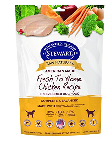 -. Binding : Misc. -. Brand : Stewart -. EAN : 0073101027627 -. Feature : 3.75 ounce - Trial Size - Sourced and Made in the U.S.A. / Meat based diet with chicken being #1 ingredient / grain free, gluten free without artifical preservatives or colors / High in protein, low in carbs to promote a lean healthy body / Minimally processed to retain purity of nutrients with only USDA ingredients in an approved facility -. Label : Gimborn Pet Specialties -. Manufacturer : Gimborn Pet Specialties -. Model : 402762 -. MPN : 402762 -. NumberOfItems : 1 -. PackageQuantity : 1 -. PartNumber : 402762 -. ProductGroup : Pet Products -. ProductTypeName : PET_SUPPLIES -. Publisher : Gimborn Pet Specialties -. Size : 3.75 oz -. Studio : Gimborn Pet Specialties -. Title : Stewart Raw Naturals Fresh To Home Freeze Dried Dog Food -. UPC : 073101027627