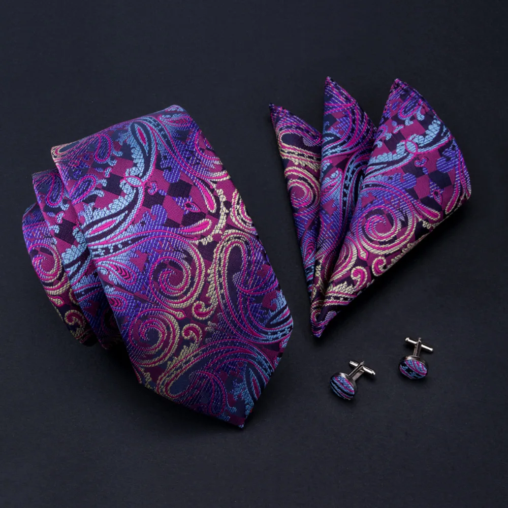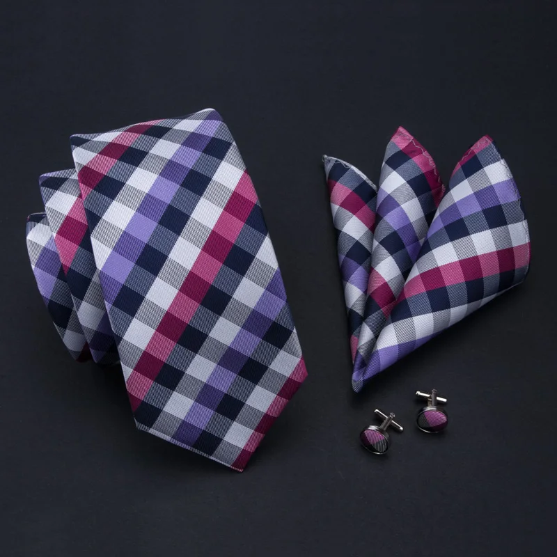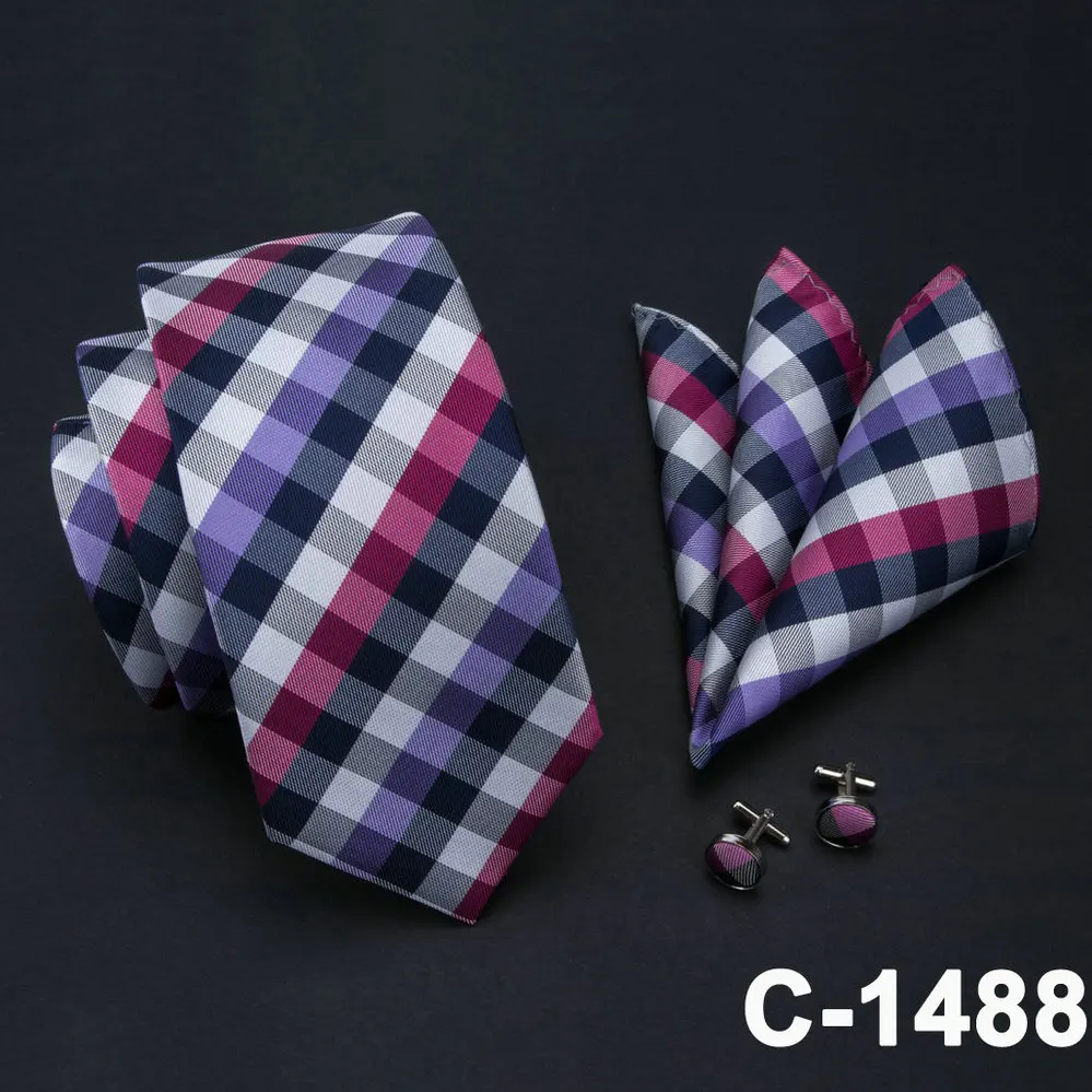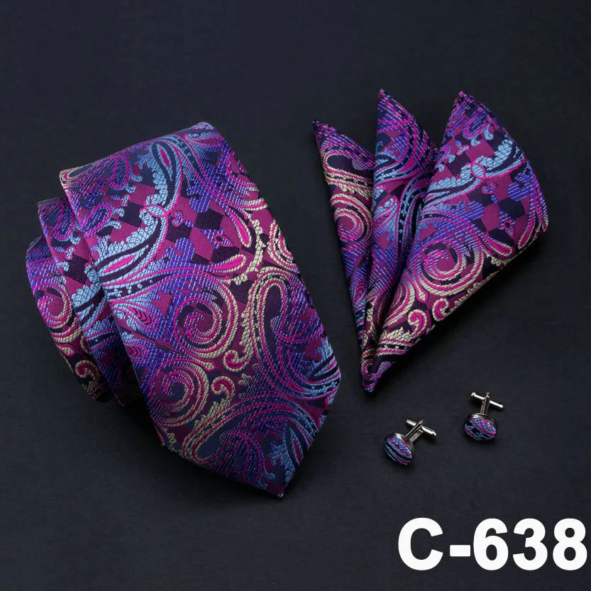 Material: 100% Jacquard Woven Silk Ties Ties Type: Neck Tie Set Neck Tie Set: Tie Hanky/Pocket Square/Handkerchief Cufflinks High Quality Silk Neck Ties: 2016 Gravata /Corbatas/ Cravatte/Krawatte Other Types: Single Ties/Tie Sets/Skinny Ties/Bow Ties/Tie Pins/Cufflinks Other Patterns: Solid/Plaid/Striped/Geomatric/Polka Dot/Floral/Paisley Wear Recommendations: For Suits/Vest/Full Dress/Blazers/Jackt/Shirt