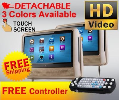 -. Title : Tan 9" High Resolution Digital Touch Screen Detachable Headrest Dvd Player Monitors Games and Cigarette Adapters