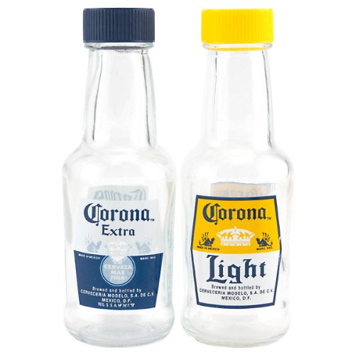 Corona Mini 2 oz Glass Replica Bottle Salt and Pepper Shakers