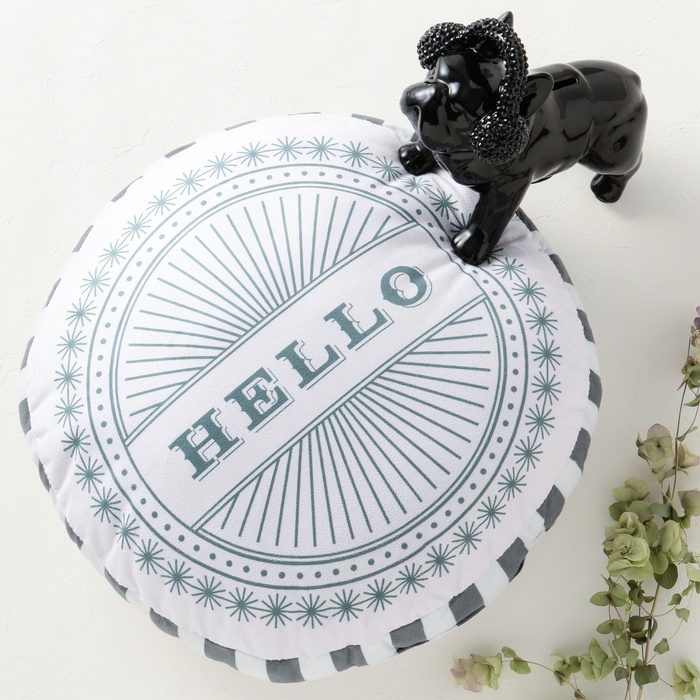 오브제가 된 불독의 저금통과 팝적인 디자인 쿠션이 즐거운 생활을 연출합니다.