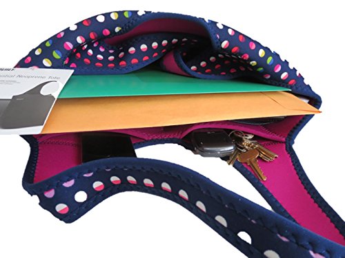 -. Feature : This stylish, stretchy and ultra-durable neoprene bag holds and organizes everything you need for a quick business trip, weekend getaway, long commute or day at the spa. / 3 roomy pockets hold all of your essentials. Zip closure makes sure it all stays in place. / Simply slip the comfortable double shoulder straps over your arm and get ready to take on the day. Padded handles make it easy to carry even with heavy loads. / Doubles as a beach, travel, market, or reusable shopping bag. / Machine-washable, so cleaning it is a breeze. / Built in sleeve compartment with zipper holds folders, notebooks, magazines and laptops up to 16" / Made of Neoprene, the wetsuit material, vinyl and PVC free / Measures 17-1/5-inches wide by 22-inches high by 5-inches deep Stretches to fit everyday essentials / Built in (3) compartments, 1st is for your favorite magazines, newspaper etc. Middle zippered compartment will hold your folders, notebooks, or laptop up to 16-inches 3rd pocket will hold your everyday essentials. / Built in inside 1st compartment in the TOP two interior snap small pockets for personal items, Smart phone, keys etc.