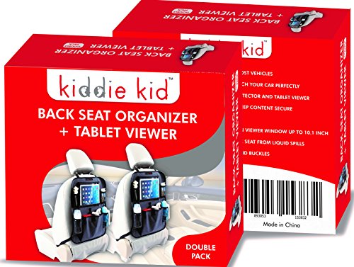 -. Feature : KIDDIE KID CAR BACK SEAT ORGANIZER: Constructed of DURABLE & STYLISH GRAY fabric, WATERPROOF BACKING to protect the car seat upholstery from liquid spills & stains, MATERIAL: 600D POLYESTER to ensure durability and eliminate stretching or shrinkage / FEATURES A TABLET POCKET with a touch-screen window viewer, will fit any tablet up to 10.1 inches, makes it the most ideal accessory in the car to keep your kids entertained, the pocket features port access on all 4 corners for all wires / FOUR MESH POCKETS with elastic top closure to keep its content securely inside, One bigger pocket for bulkier items (any you can think of) closes with a Velcro strap too keep it all in place / Its multipurpose use as Car Seat Back Organizer, Kick Mat and Car Seat Protector Tablet viewer makes it the best car seat organizer for early morning trips to school, or long vacation rides / Easy to install with Adjustable top and bottom straps & buckles it also keeps the backseat organizer flush with the car seat. Universal design fits most vehicles Dimensions: 20.8" x 16.9" Care: wipe clean with soft cloth.