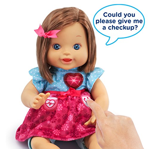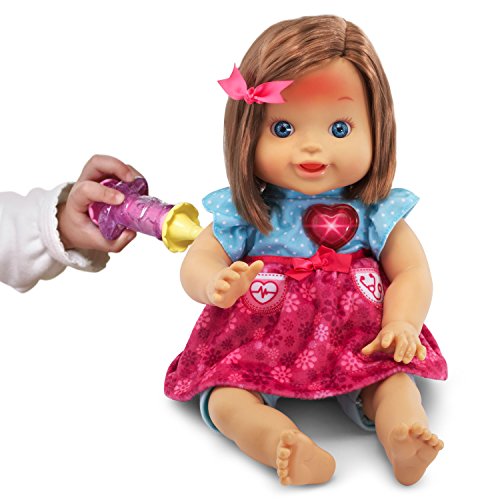 Your little one can pretend to be a Doctor with the baby amaze happy healing doll by VTech. This nurturing doll will tell children how she feels, and different parts of her body will light-up to show where she needs care. Your little Doctor can nurse this adorable doll back to health with helpful accessories like a thermometer, syringe, stethoscope, bandage, medicine bottle and spoon. Each accessory triggers fun phrases and sounds. This interactive doll also gives health tips and says nurturing phrases about the importance of staying healthy and helping others. The happy healing doll can also be personalized to learn your child's name, birthday, special events and more!.Feature
