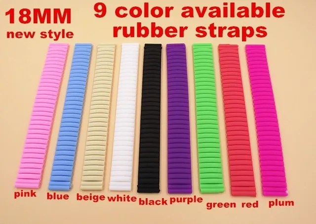도매 많은 25 개 18mm 고무 시계 밴드 10 색상 가능 us$ 14.99/ lot 조각/ 많은 |