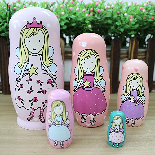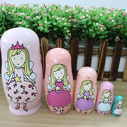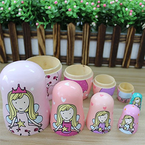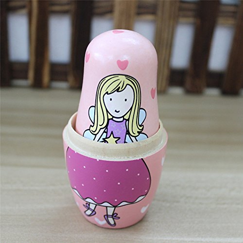 GoodPlay 5pcs Wooden Cute Lovely Pink Angel Nesting Doll Playsets Popular Handmade Kids Gifts Toy