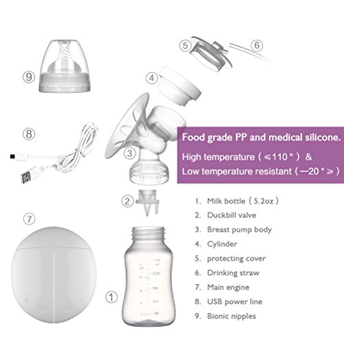 -. Feature : ❤ULTRA-QUIET AND SENSITIVE TOUCH: Other brand's breast pump produces a lot of noise. To be honest, no breast pump is completely quiet, but the sound is not the sound from the host, but the sound produced by the wind tunnel, and the strong suction produced by the wind resistance. Compared with other brands, we are very focused on reducing noise, so the noise has dropped to a very low value. Also, the touch button is quite sensitive which will give you more smooth experience. / ❤100% MONEY BACK GUARANTEE: Good quality can stand the test of time, accompany the baby from birth to growth, the quality gets millions of mother's trust. Does our breast pump come with a money back guarantee? YES! Your purchase comes with a full 90-day no-risk, no-nonsense 100% Money Back Guarantee. Either you're thrilled, or we don't want your money! See why Amazon customers rate our products 5-Stars! / ❤UNIVERSAL USB PORT: It's very convenient to connect to the commonly used smartphone adapter, computer, charge bank and other plug have USB port. No matter where you are, as long as the baby is hungry or you need it, you can use it immediately. Unlike another breast pump, maybe you will meet the situation that runs out of power when you want to use it. / ❤BILATERAL ELECTRIC BREAST PUMP& 18 LEVEL AUTOMATIC MODE: It's time to say goodbye to low efficiency and low pumping traditional manual breast pump. The latest electric breast pump is your best choice for a new mom. The bilateral design shortens the time of suckling, improves efficiency and prevents the baby from crying because of hunger. Adjust the level(1-18 levels) according to your needs. The intensity is moderate as if the baby is sucking your milk. Automatically to remember the level you u