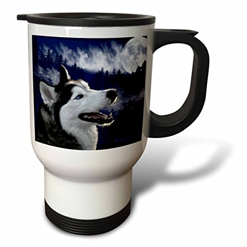 3dRose Blue Eyed Alaskan Husky Stainless Steel Travel Mug, 14-Ounce