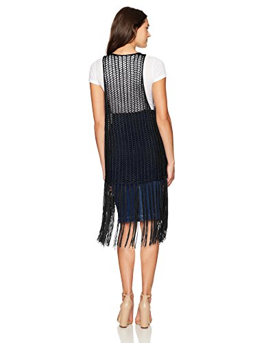 Product DescriptionLong solid crochet open vest with 14 in. Tassel end0