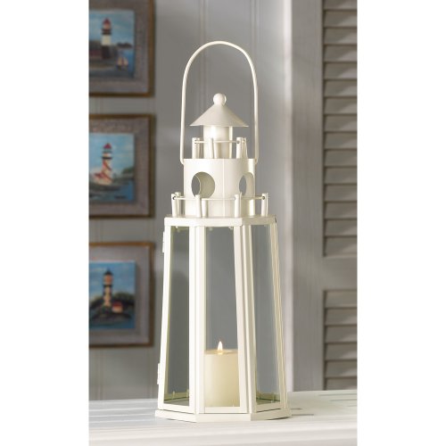 -. Title : Gifts & Decor Ivory Lighthouse Candle Holder Outdoor Hanging Lantern