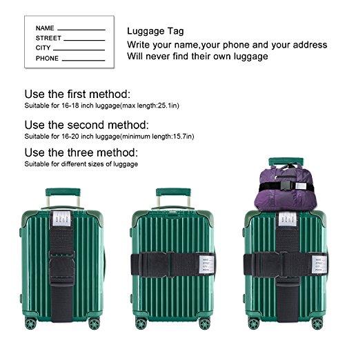 Specifications: Maximum Length:64 cm/25.19 inches Minimum Length:40 cm/15.74 inches Width:5cm Suitable for 16 to 18 inch luggage Material: PP Strap and ABS Buckle 0