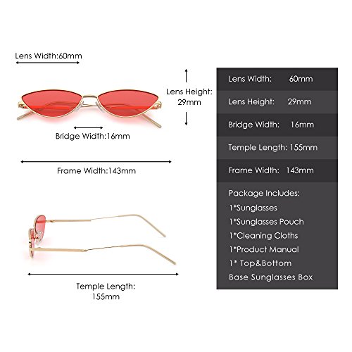 Trendy cat eye designer sun glasses -- Slender cat eye shape with metal frame and bright candy color lenses, stylish and personality, suitable for matching any clothing both for men and women, a good accessory for party, club, street
