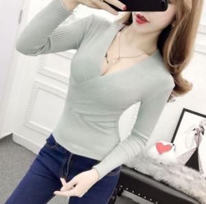 デコルテと胸元を綺麗に魅せる大きなVネックラインが魅力♪