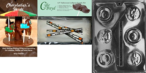 Cybrtrayd "Pumpkin Pour" Chocolate Mold with Chocolatier's Bundle, Includes 50 Cello Bags and 50 Happy Halloween Twist Ties