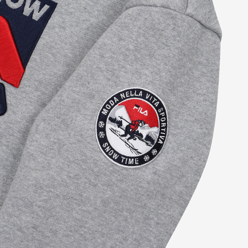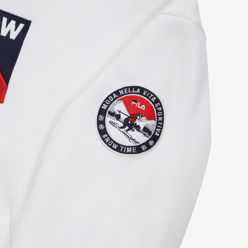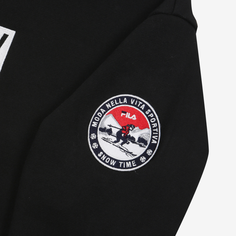 WINTER 시즌 아이템으로 `스노우타임` 후디 맨투맨착용감이 우수한 면 폴리 소재와 함께 보온성이 뛰어나며 터치감이 부드러운 기모 원단을 사용겨울 스키복 캡슐의 후디 맨투맨으로 앞판에 로고를 활용한 자수가 포인트스키복 팬츠와 코디 가능하며 기본 후디로 다른 면이나 데님 팬츠와 코디 가능
