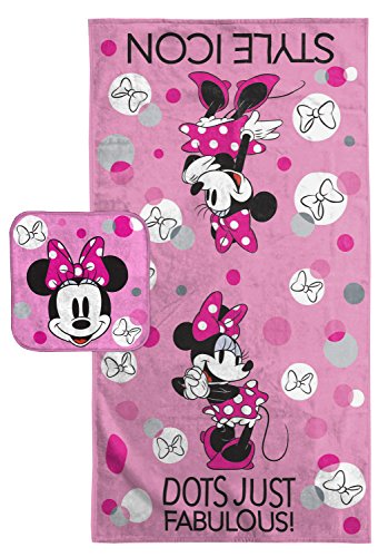 Disney Minnie Mouse Dots Cotton 2 Piece Bath Towel/Washcloth Set