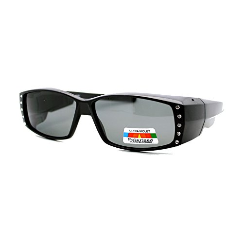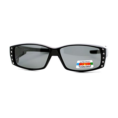Womens Rhinestone Rectangular Polarized Fit Over Glasses Sunglasses Black