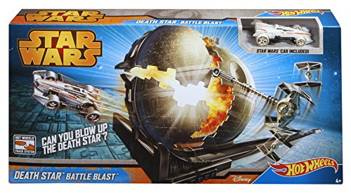 -. Feature : Join the Rebel Alliance and explode the Death Star / Track set combines classic Hot Wheels thrills with the excitement of Star Wars / Three-speed launcher sends X-Wing inspired car (included) at the swinging target / Hit the target and the Death Star breaks apart; miss and loop around for another try / Includes 1:64-scale Hot Wheels Star Wars X-Wing inspired car with an exclusive deco