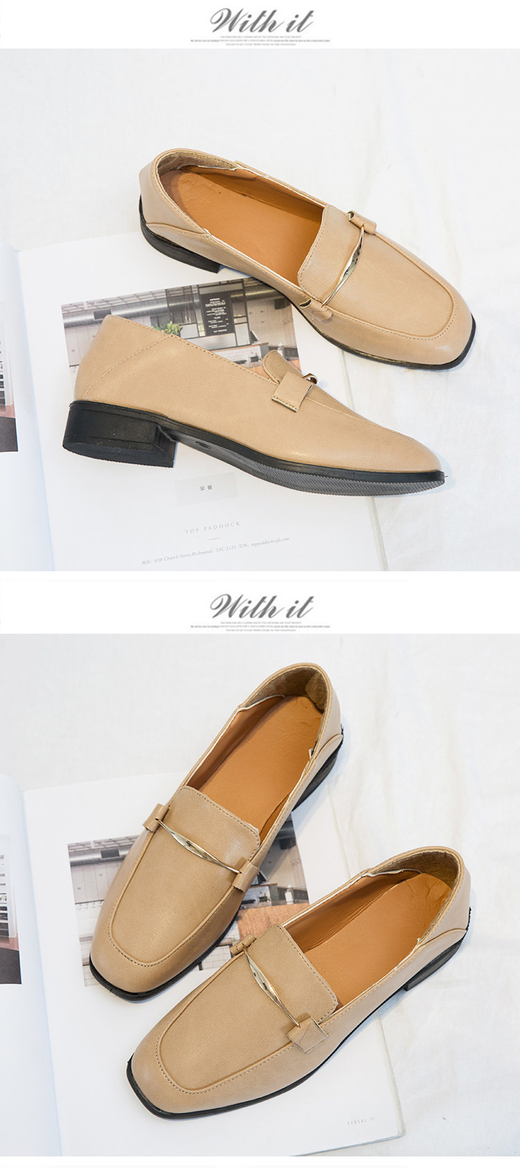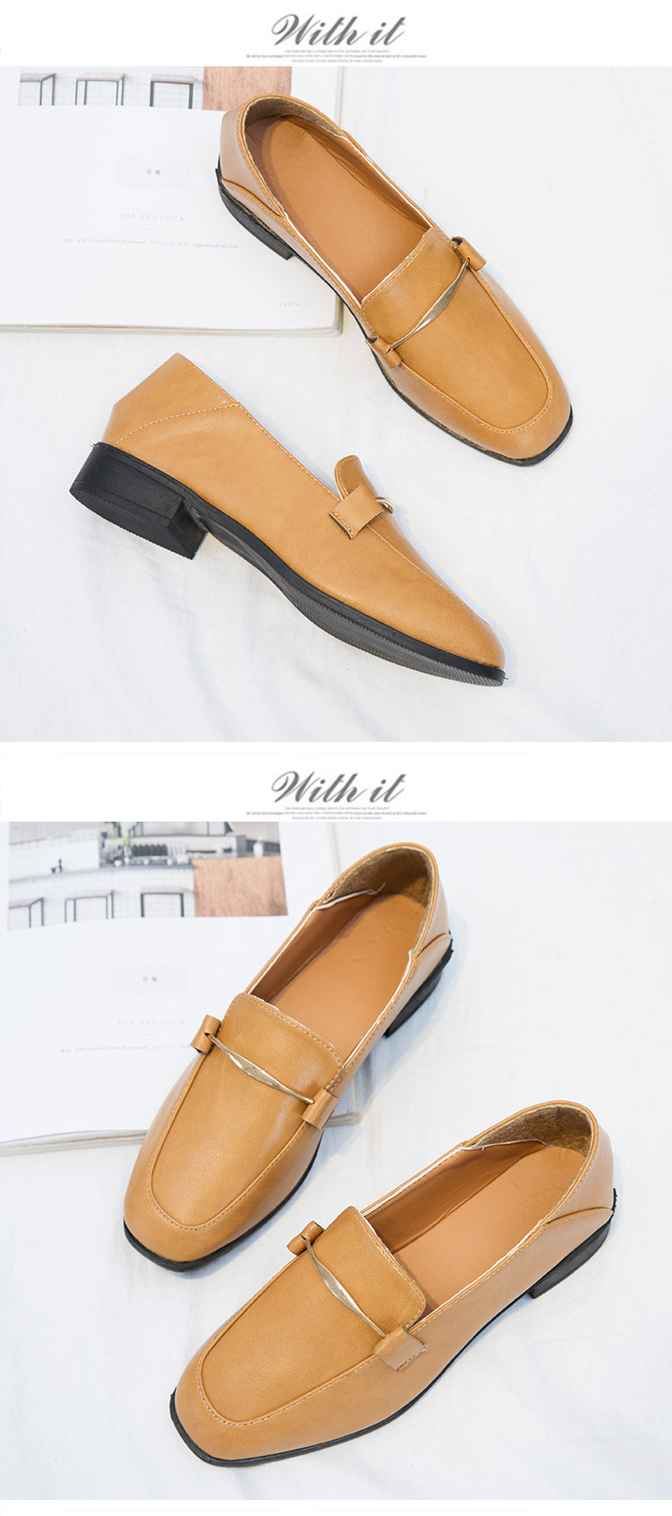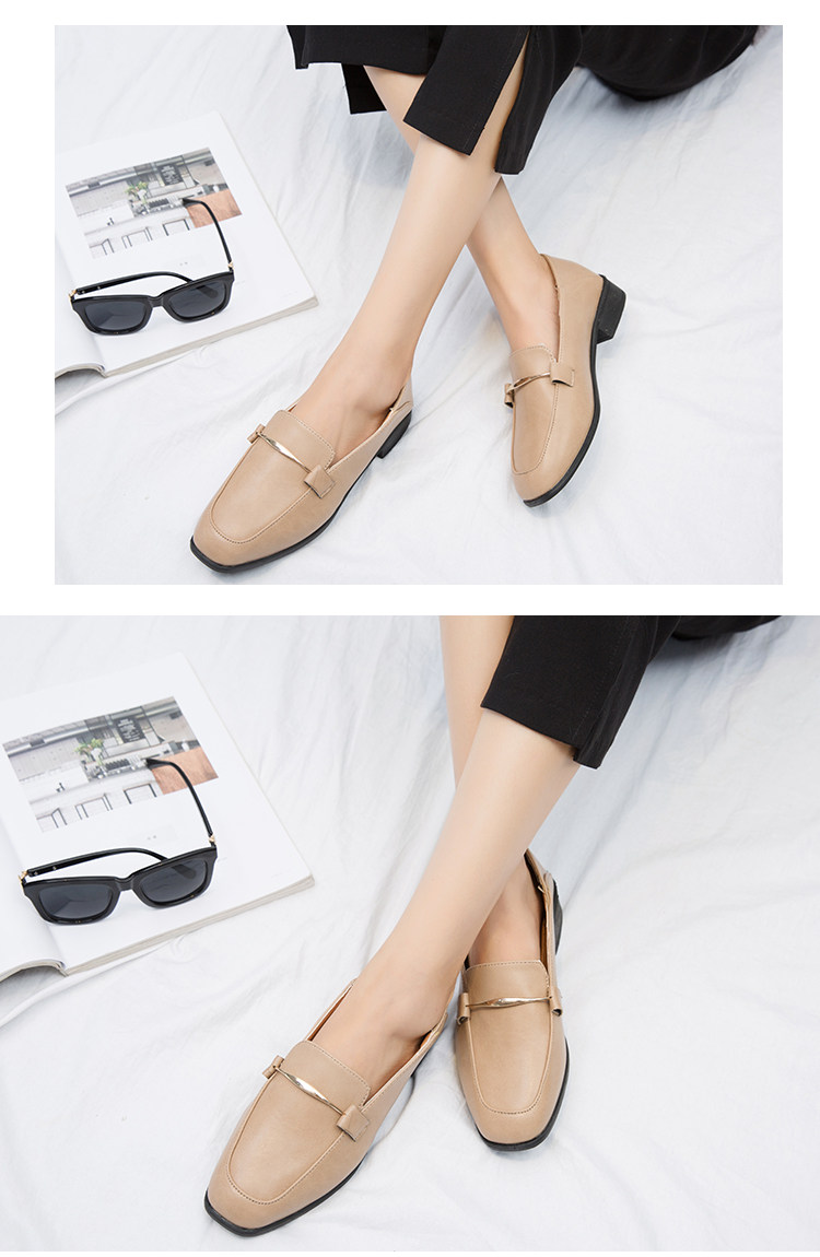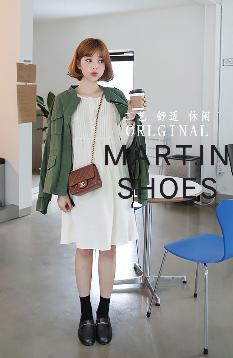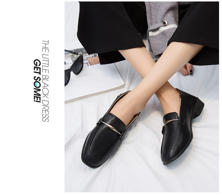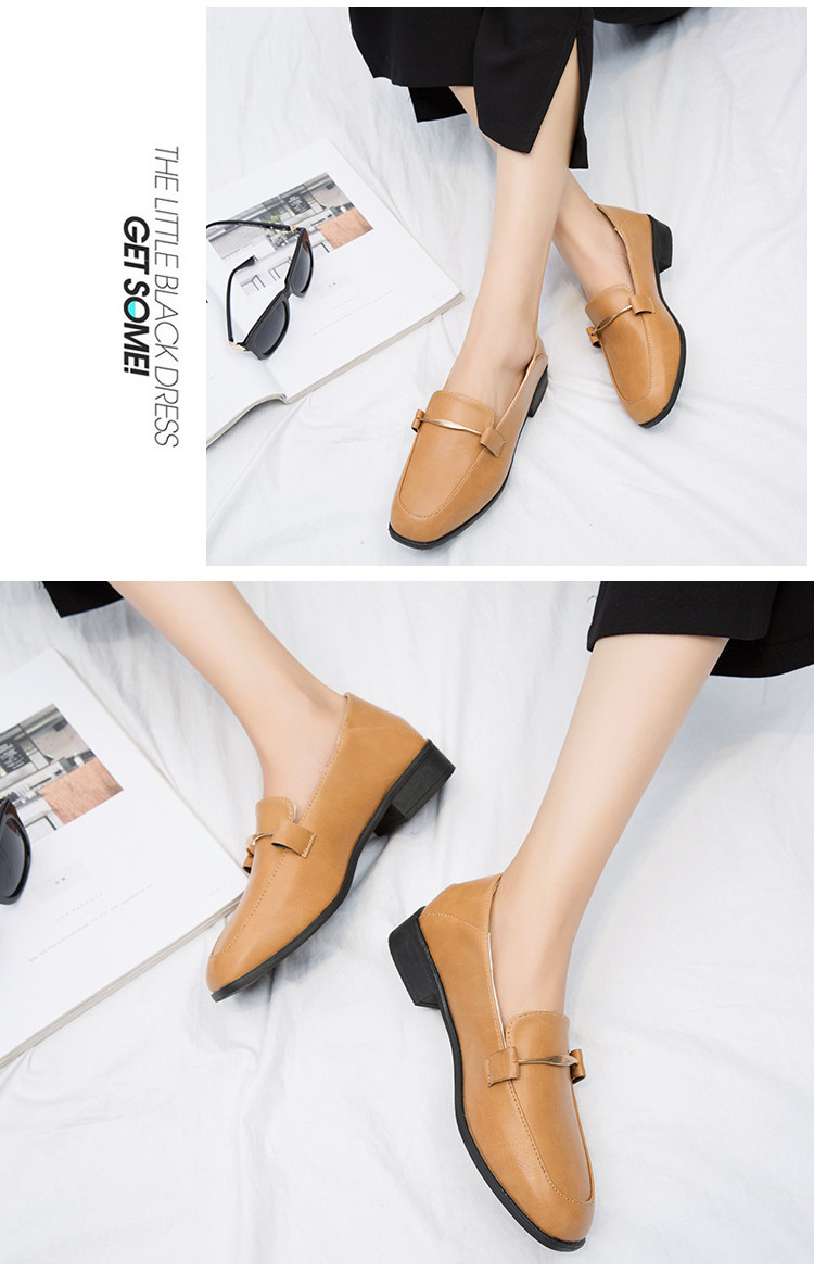 秋新款乐福鞋女韩版百搭粗跟方头英伦风小皮鞋一脚蹬时装单鞋
