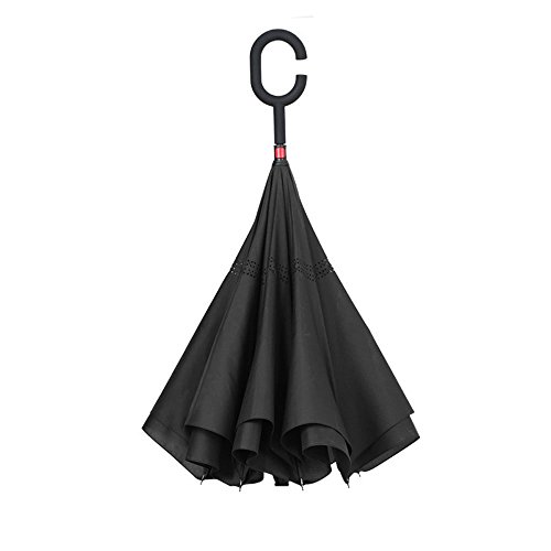 Unique Design Double Layer Inverted Umbrella outside in umbrella, Upside Down Umbrella (Black)